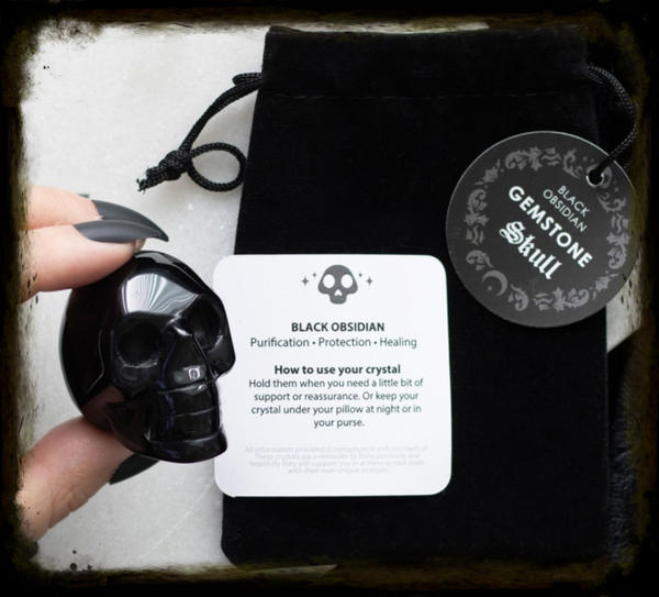 This crystal skull is made from black obsidian which is a stone renowned for its ability to evoke feelings of purification, protection and healing. The skull is the perfect size for holding in the palm of your hand then you need a little support or reassurance. This unique piece serves as a stylish desk accessory, always within arm's reach for those moments of need. Presented in a black drawstring pouch for keeping the skull safe whilst on the go.